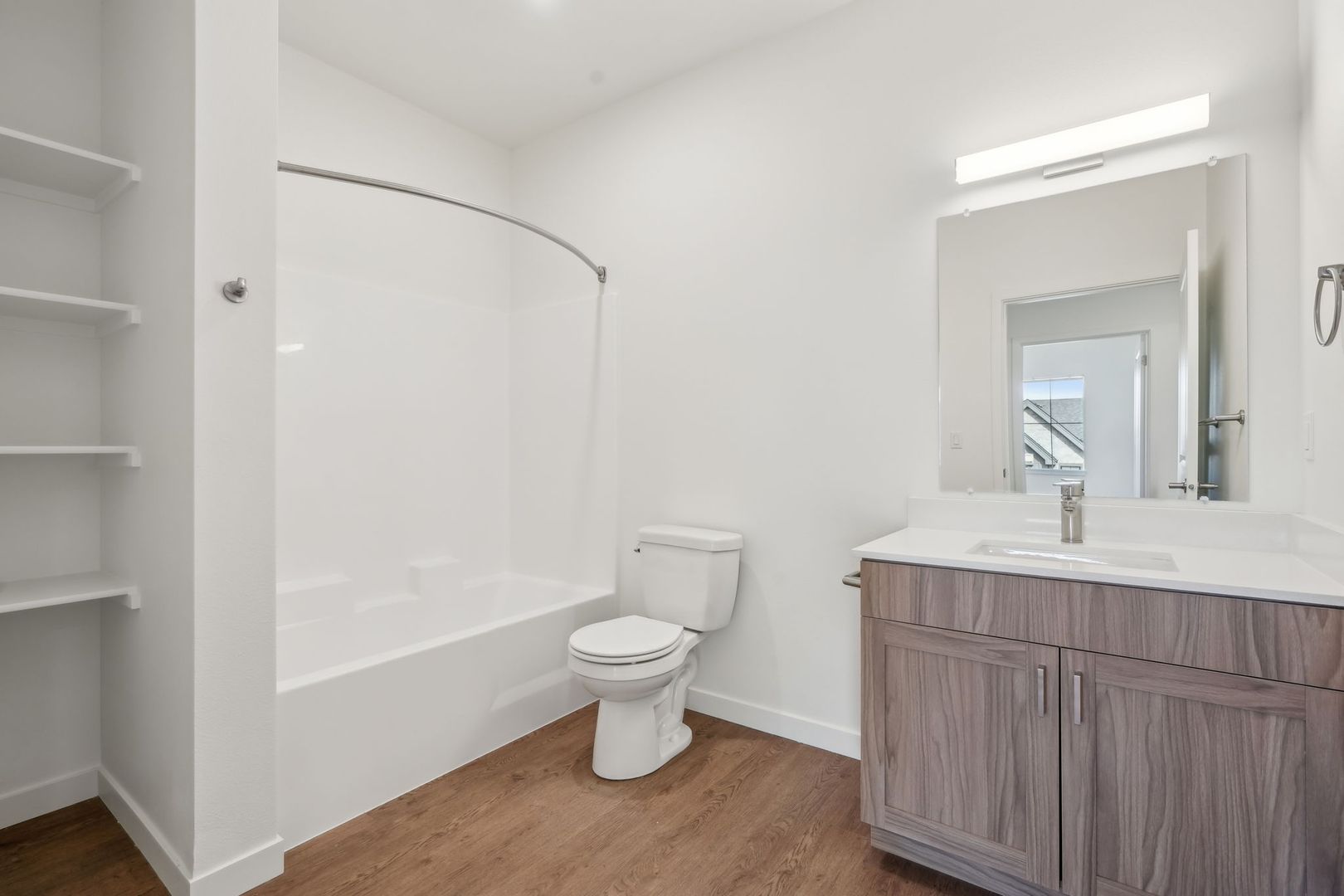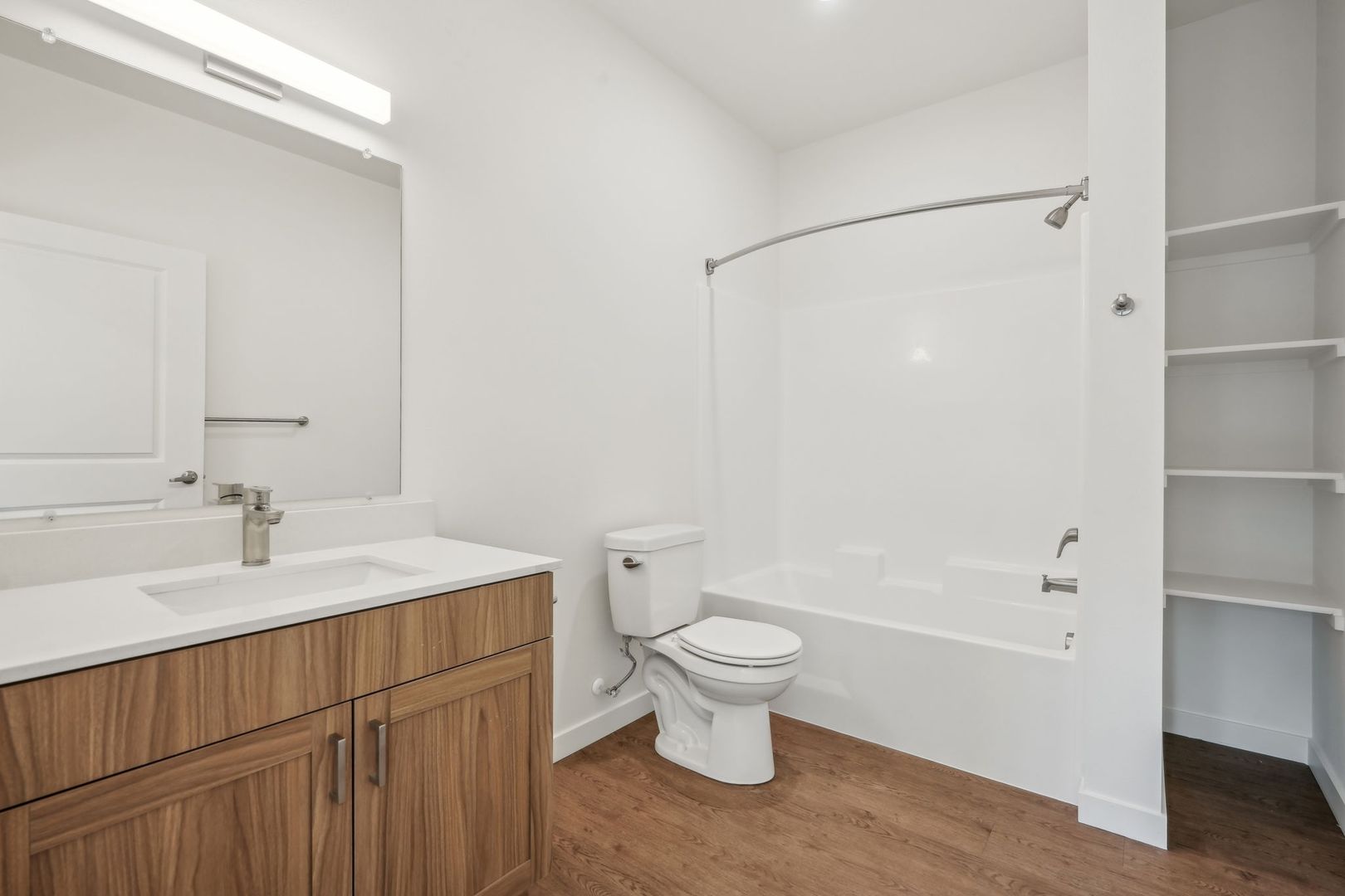 Step into effortless luxury with this expansive 1,329 sq. ft. first-floor residence at The Hamlet at Curtin Creek. Designed for both comfort and convenience, this modern home features a large open floorplan with stylish vinyl plank flooring and ample storage to keep your space organized and clutter-free.