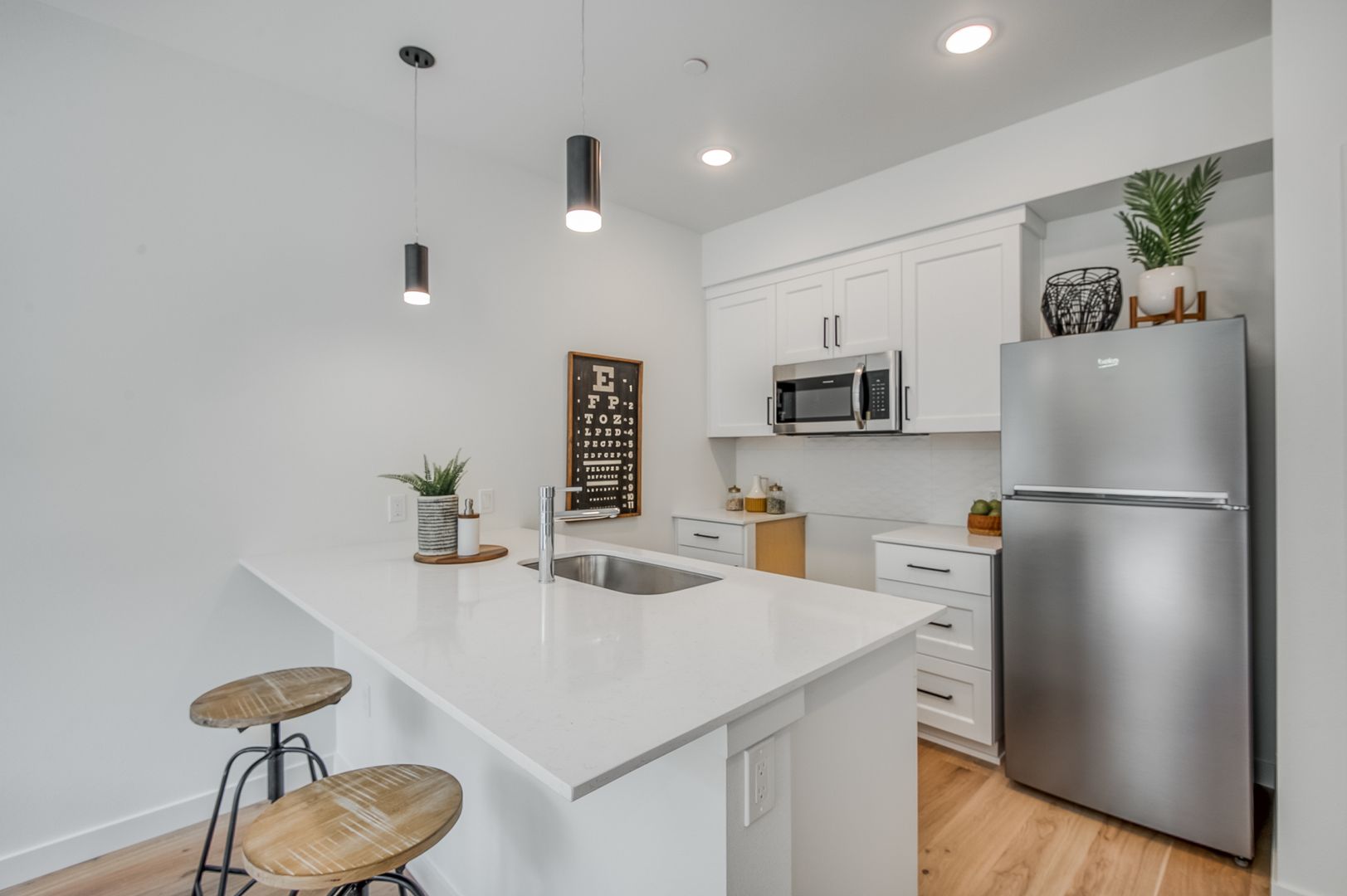 You can call yourself at home in these luxury, one-bedroom spacious homes! Each unit offers a fully equipped kitchen, beautiful cabinetry, washer and dryer, vaulted ceilings and a balcony/patio in certain units, hardwood flooring throughout, fully secured entrance, elevator served, and pet friendly.