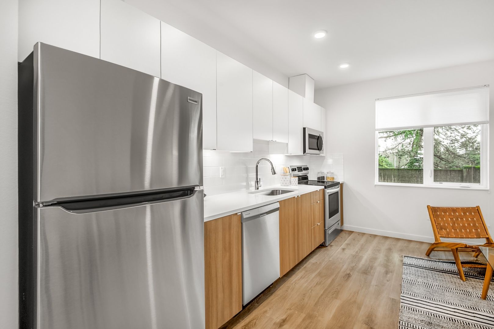 These homes are refined and yet very homey design with an open concept. Large windows and careful design lend natural light to the space which emanates throughout your home. Bright quartz countertops and white wood cabinetry really compliment the natural flow of light into space. Your plants will be happy and healthy!