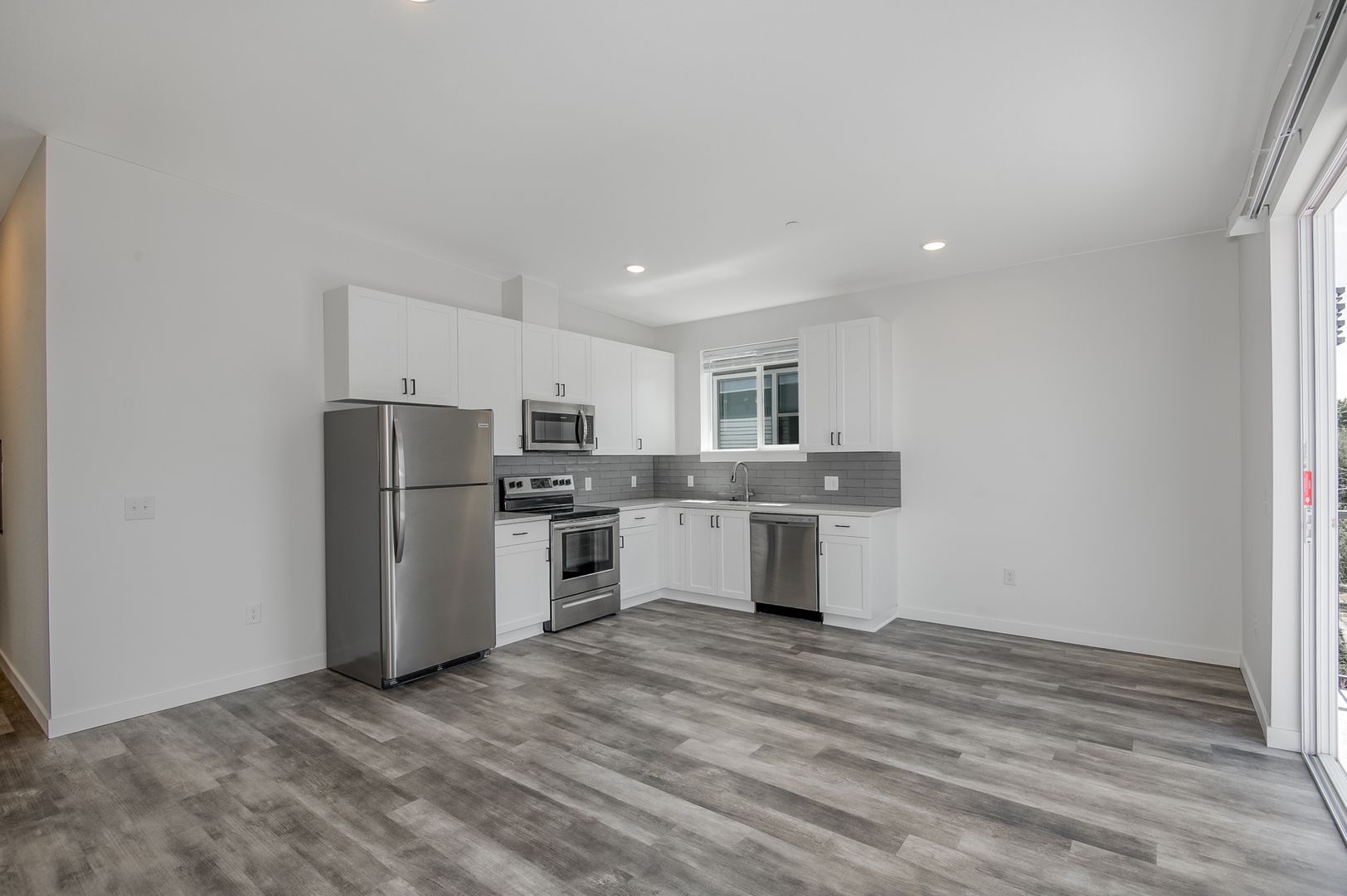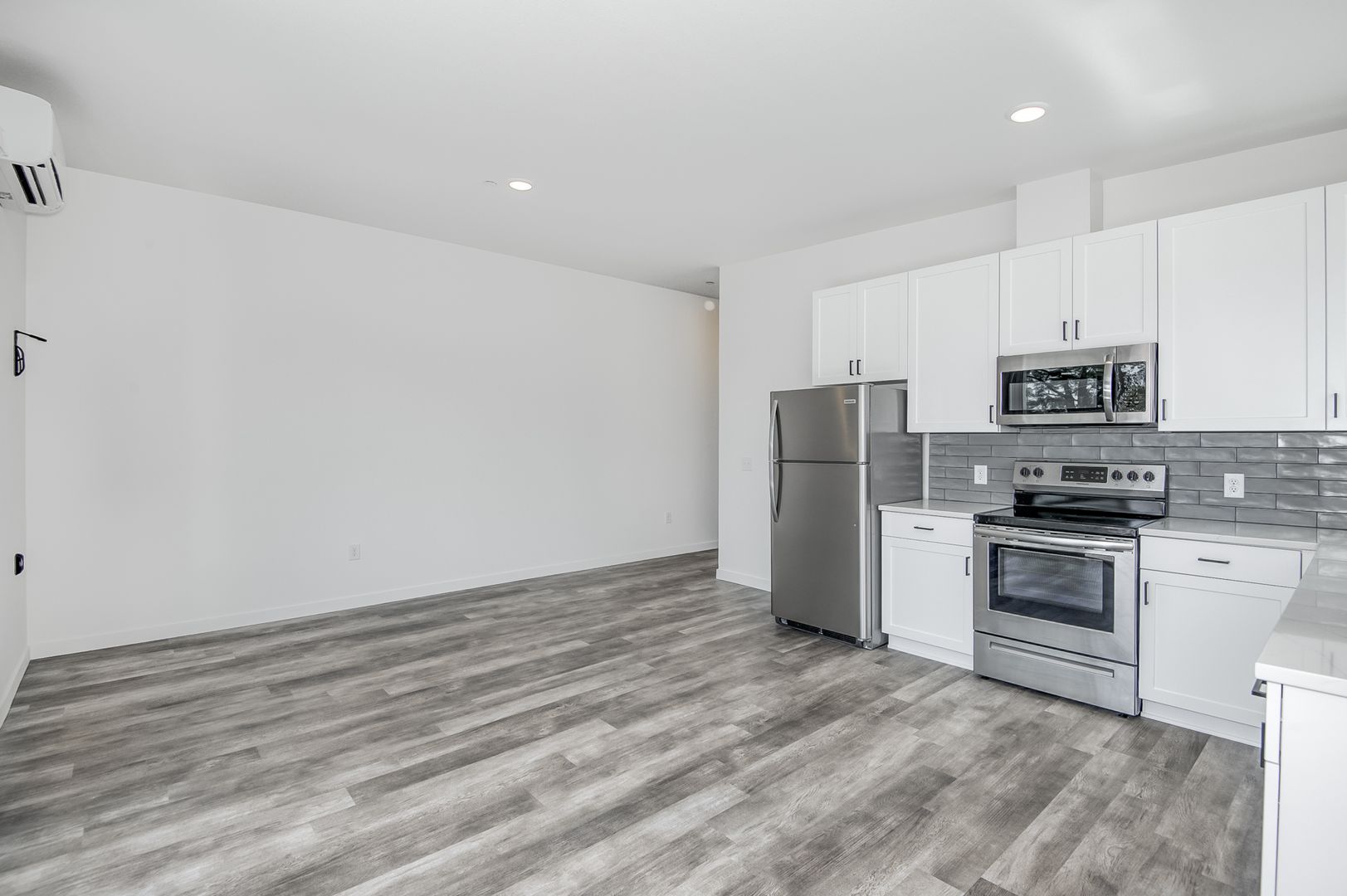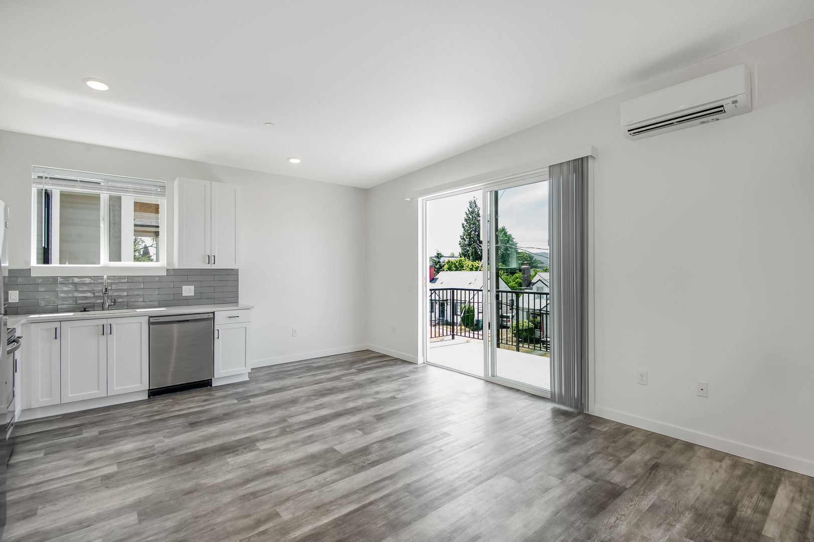 This luxury 1-bedroom, 1-bath unit is located in the vibrant Arbor Lodge neighborhood in North Portland! Enjoy the best of both worlds with a stylish apartment that combines luxury finishes and an ideal location close to everything. Featuring AC/mini splits, large windows for natural light, vinyl tile flooring, quartz countertops, and custom cabinets, this apartment offers comfort and modern style. The convenience of in-unit washer/dryer and in-unit bike racks adds to the appeal, while select units also include private balconies and separate entrances for added privacy.