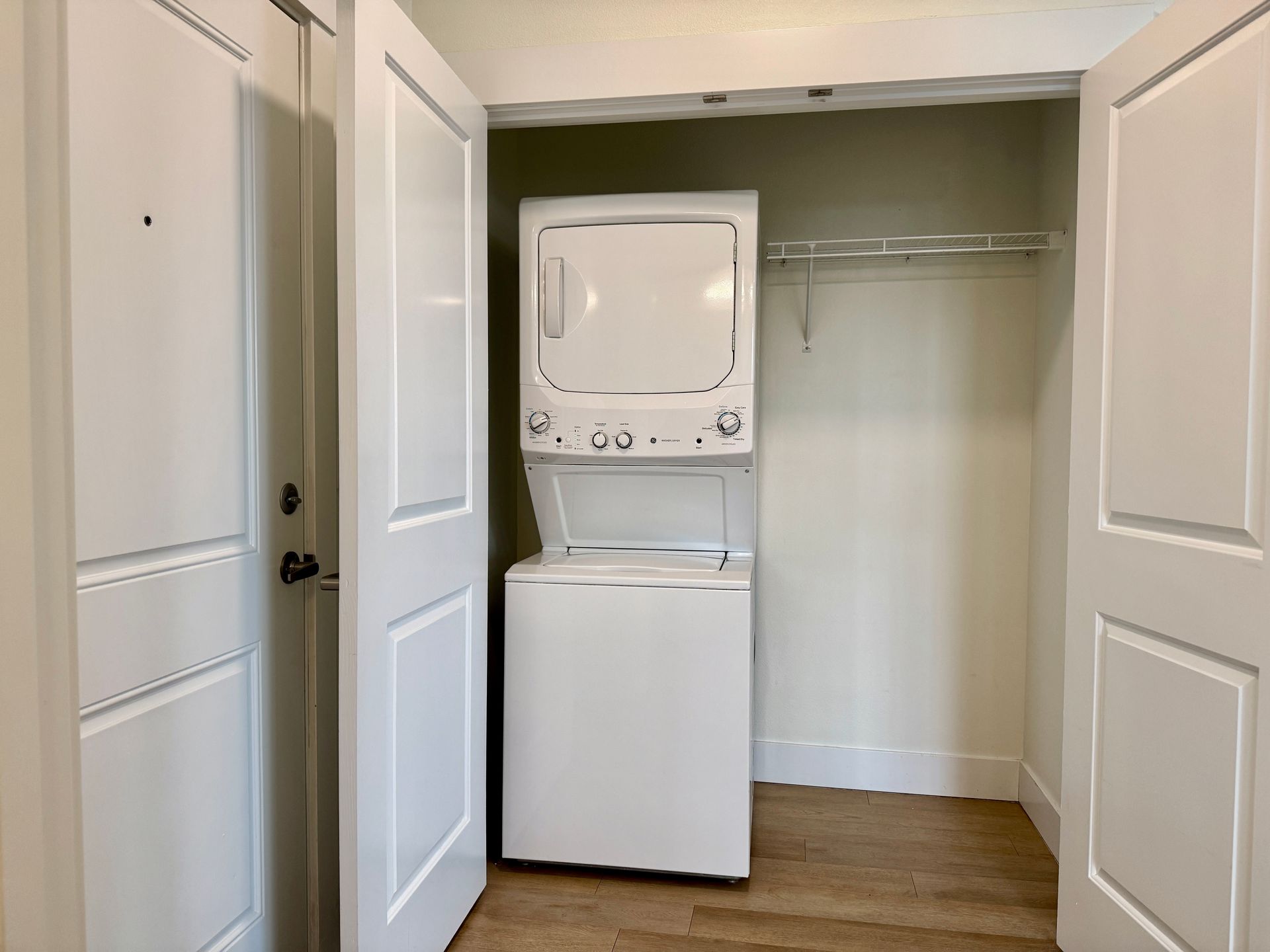 This home includes one free assigned parking space, with additional guest parking available on-site. You’ll also have the convenience of a full-size in-unit washer and dryer.